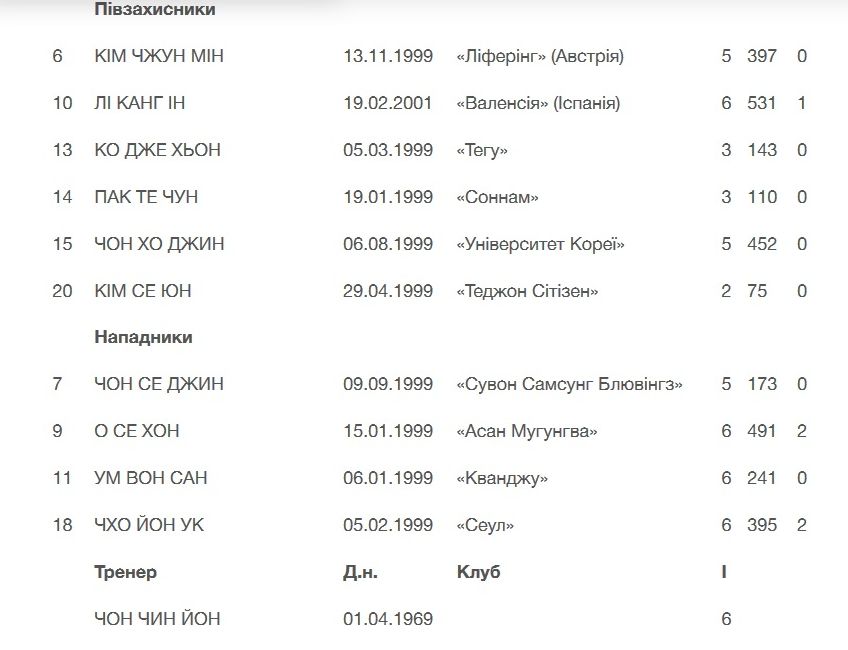 А от вінгер «Баварії» Чун Ву Юн, якого оцінюють у 2 млн євро, на чемпіонат світу U-20 не поїхав. У листопаді 2018-го він уперше зіграв у Лізі чемпіонів, а в березні 2019-го — у бундеслізі.