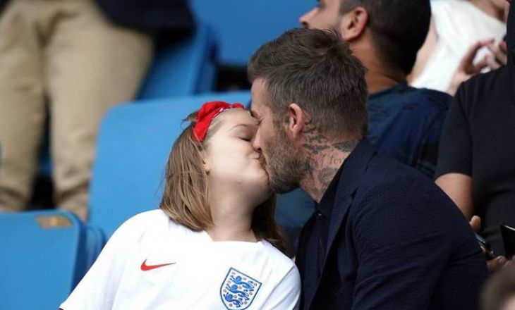 Бывший полузащитник сборной Англии Дэвид Бекхэм вместе с семилетней дочерью Харпер побывал на матче женского чемпионата мира между сборными Англии и Норвегии (3:0).