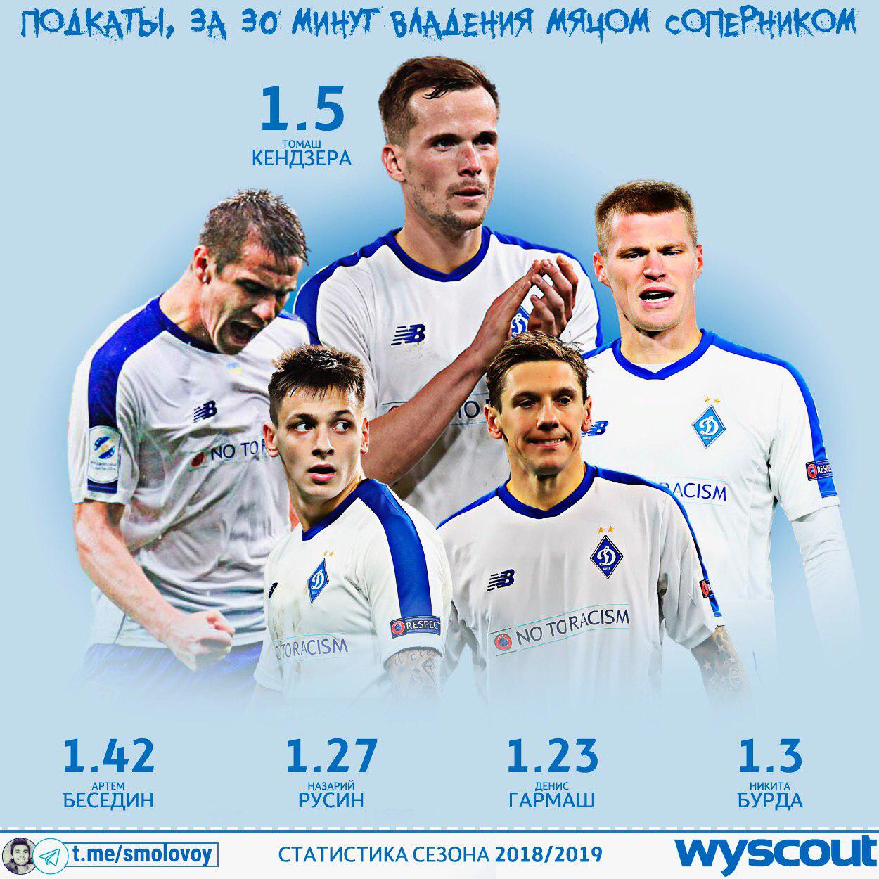 Кендзера на первом месте среди игроков "Динамо" по интенсивности подкатов, Беседин - на втором