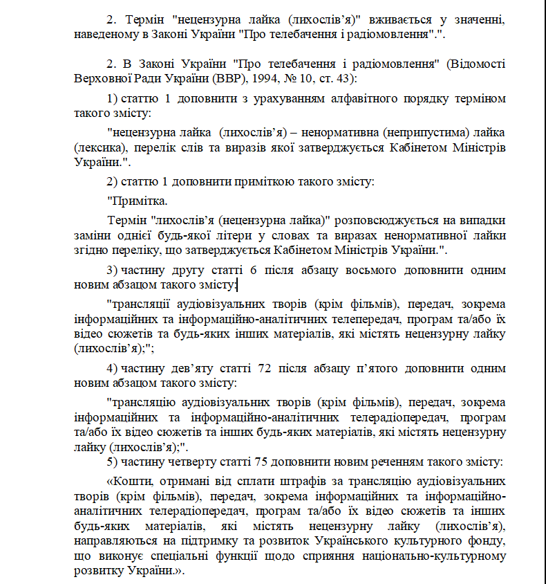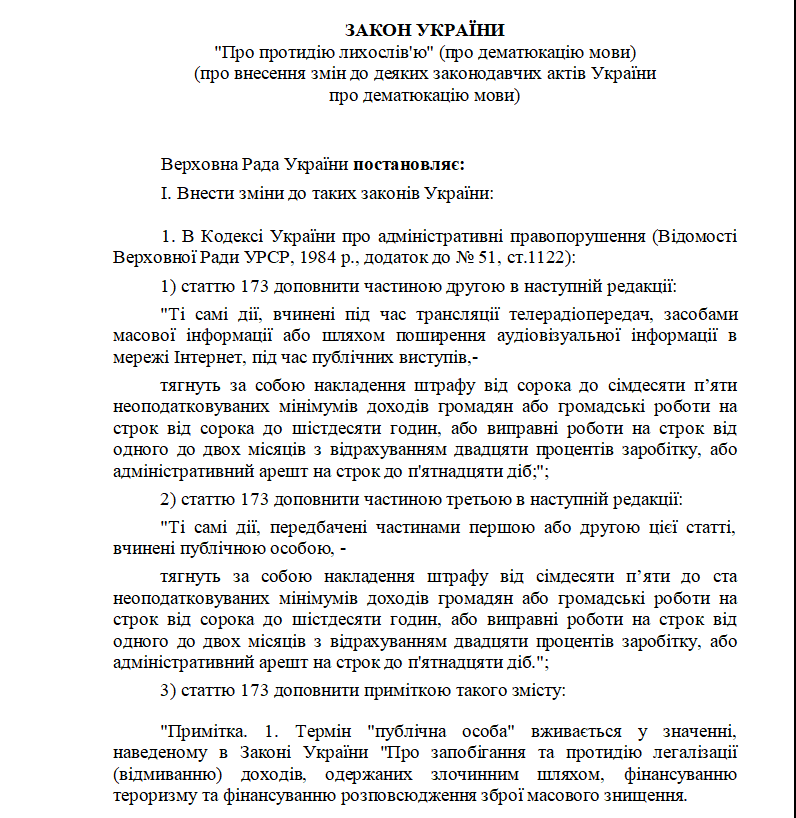 На офіційному веб-порталі Верховної Ради України зареєстровано Проект Закону "Про протидію лихослів'ю" (про дематюкацію мови) (про внесення змін до деяких законодавчих актів України про дематюкацію мови).