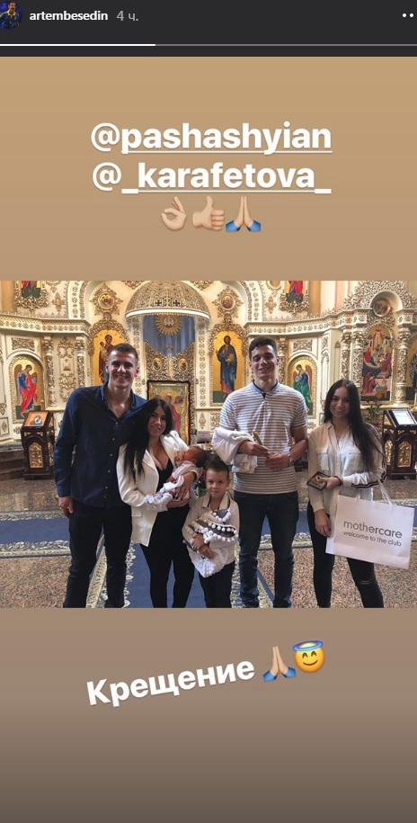 Форвард "Динамо" Артем Беседин и его жена Радмила покрестили своего сына, который родился в ночь с 24 на 25 июня. Об этом сообщил сам футболист на своей странице в Инстаграме.