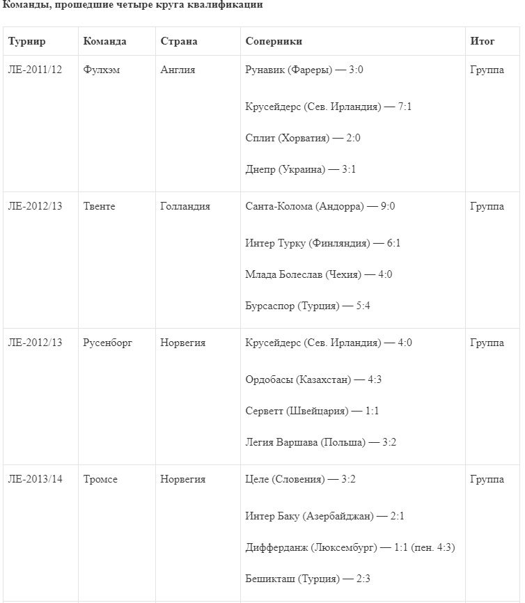 Еще один украинский след: проход Фулхэмом Днепра в раунде плей-офф в 2011-м. Финалисты ЛЕ-2009/10 преодолели все круги квалификации, став первой командой, кому удалось подобное.