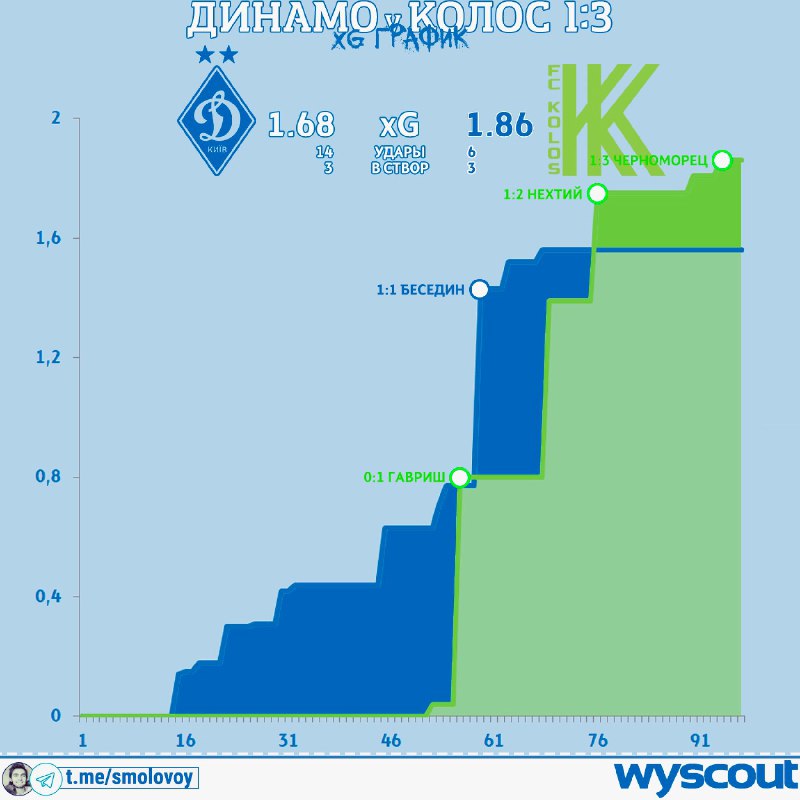 Колос создал 6 ударов по воротам Динамо и они были опаснее... 14 созданных Динамо.