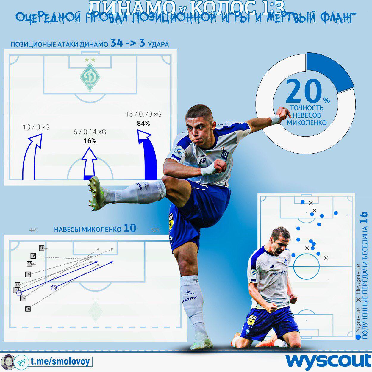 Блогер Михаил Смоловой в своем Telegram-канале продолжает разбирать игру "Динамо" в спарринге с "Колосом".