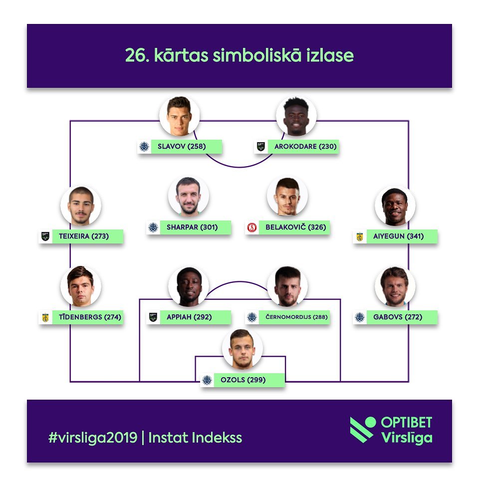 Славов и Шарпар - в символической сборной 26-го тура чемпионата Латвии