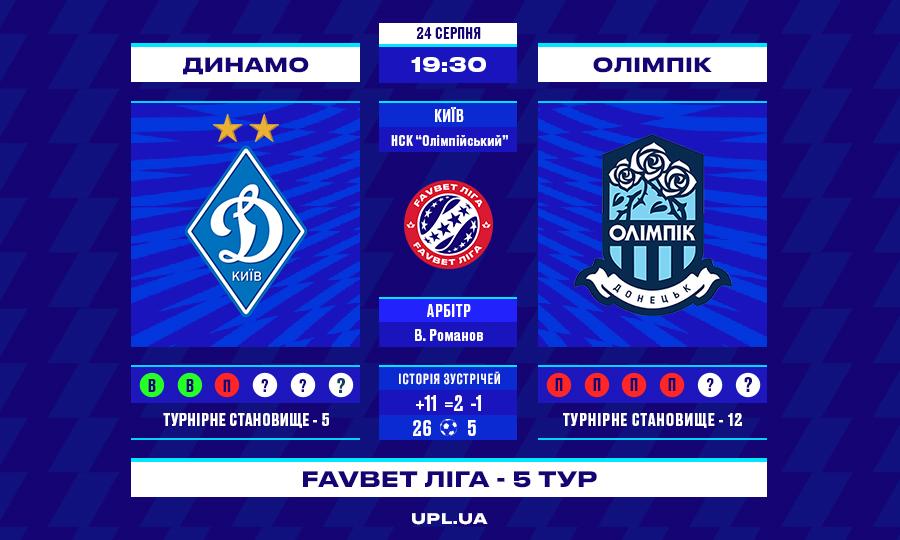 Матч 5 туру «Динамо» — «Олімпік». Статистичне прев’ю.