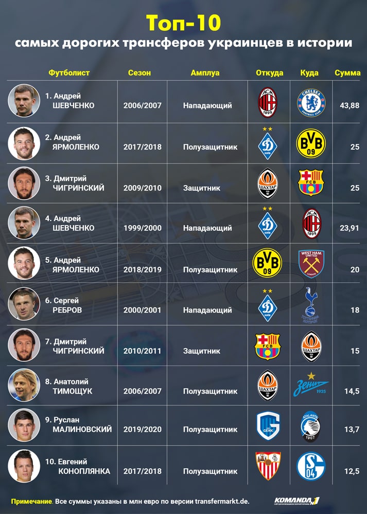 Учитывая, что этим летом за украинских футболистов звонкой и живой монетой платили неохотно, мы решили не заострять внимание на ценовых аспектах переходов соотечественников. Выделили, так сказать, самые резонансные, на наш взгляд.