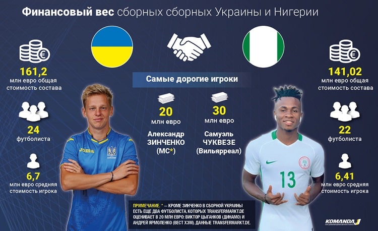 Нигерия привезла на матч со сборной Украины состав, стоимостью более 140 млн евро