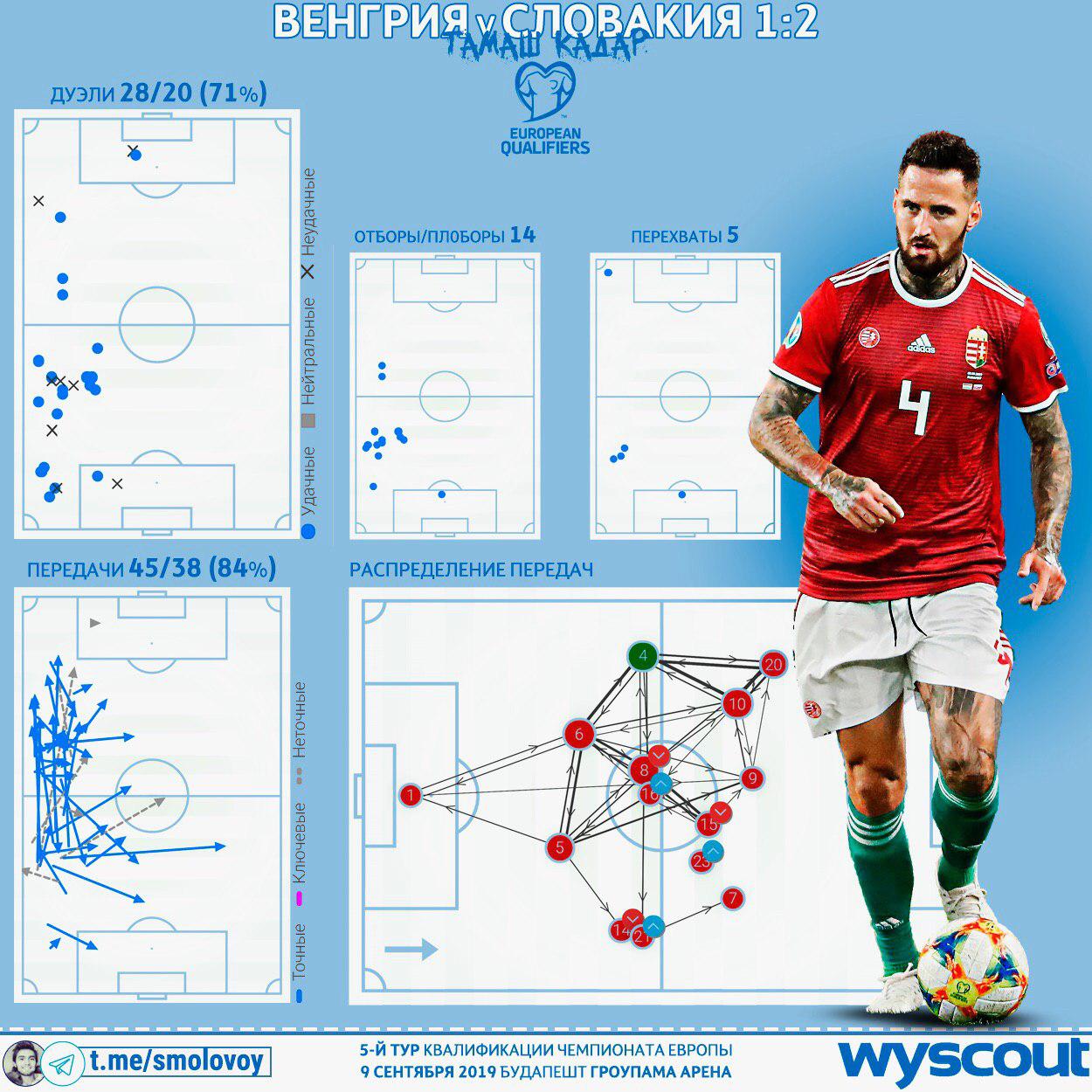Блогер Михаил Смоловой в своем Telegram-канал анализирует игру защитника "Динамо" Тамаша Кадара за сборную Венгрии против Словакии.