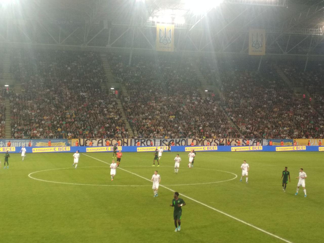 Днепровские болельщики на матче между сборными Украины и Нигерии вывесили баннер, в котором выразили свое отношение к СК "Днепр1".