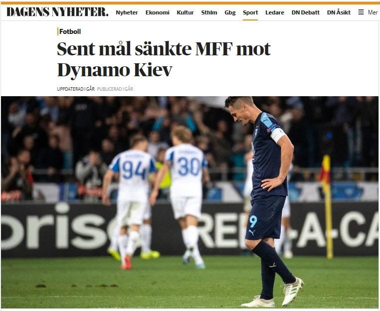 Шведская пресса в один голос выражает разочарование итогом вчерашнего поединка Лиги Европы между киевским Динамо и Мальме, пишет zbirna.com.