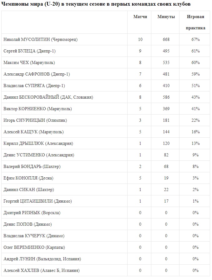 1.Шесть исполнителей еще не провели за первые команды своих клубов ни одного матча, а 12 — ни разу не выходили в основном составе в текущем сезоне УПЛ.