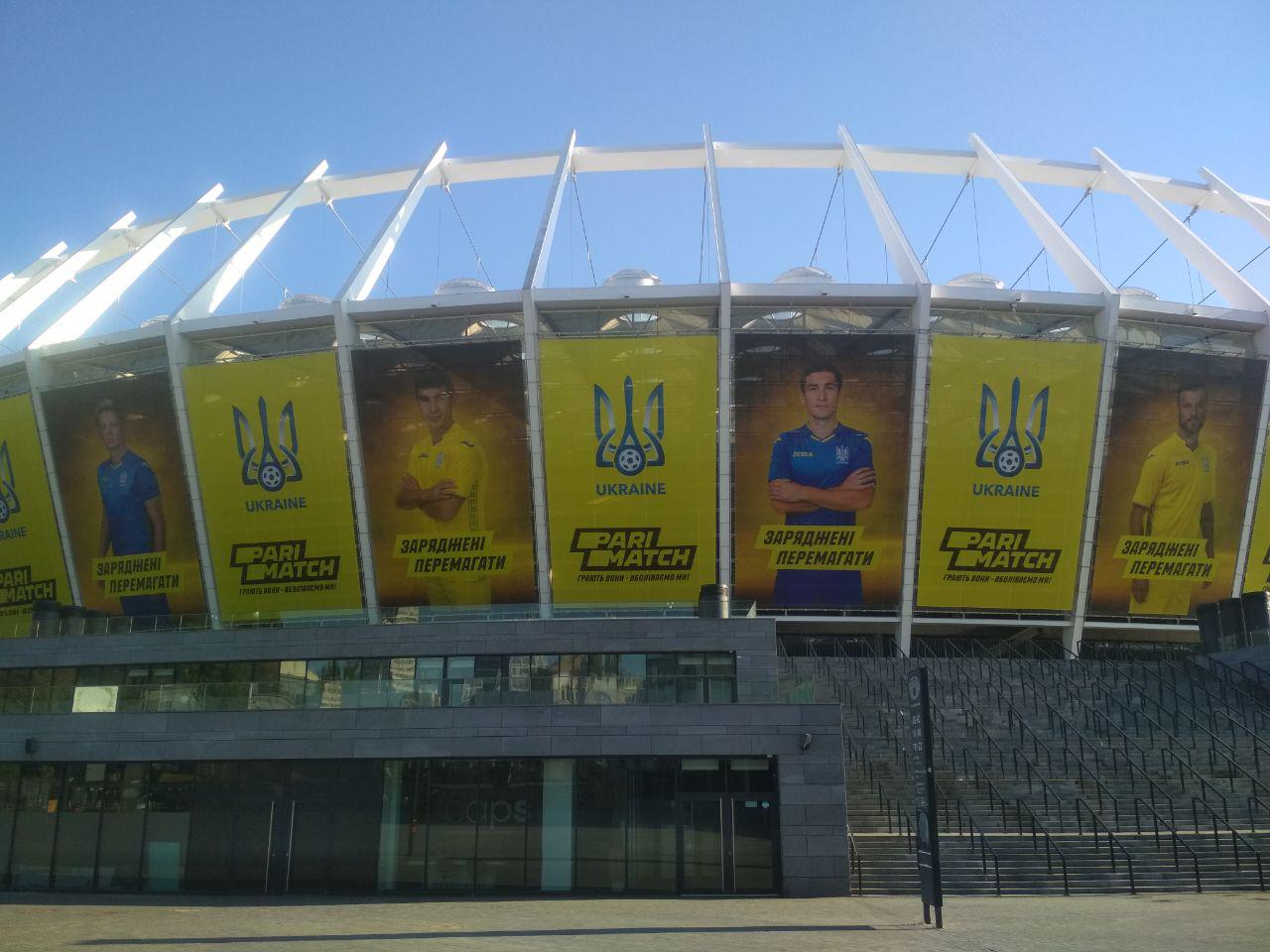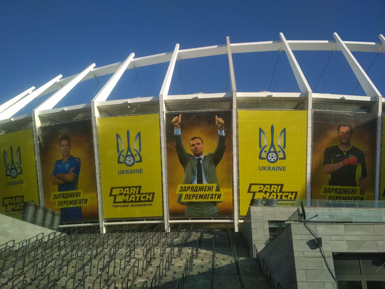 Українська асоціація футболу розтягнула на конструкції арени великі плакати із зображеннями гравців збірної.