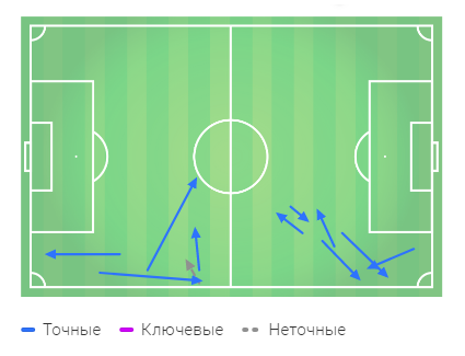 Лучше всего у Шведа дела обстояли с передачами. Из 11 пасов 10 (91%) оказались точными.