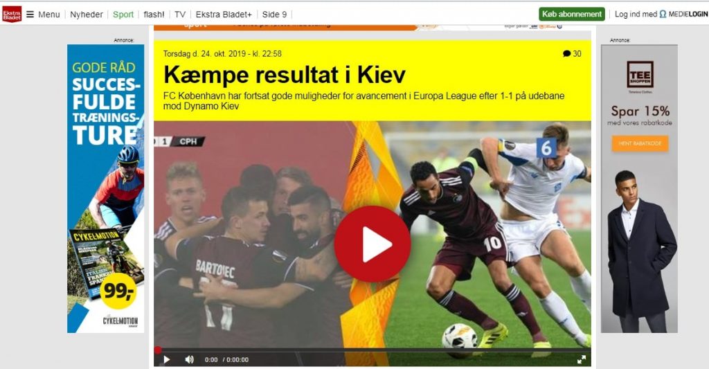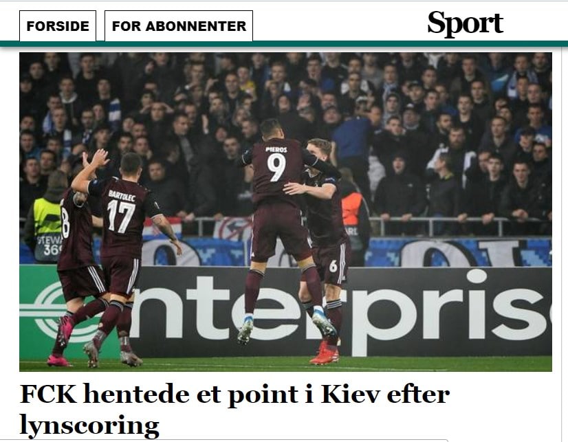 «Копенгаген взял очко в Киеве благодаря быстрому голу», — отмечает Jyllands-Posten Sport.