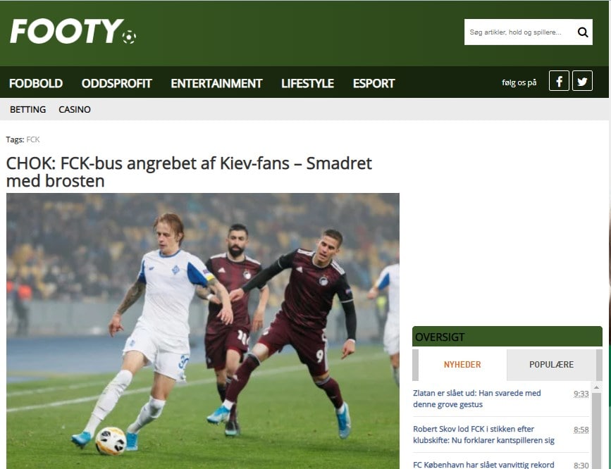 «Шок: киевские фанаты атаковали автобус с датскими болельщиками», — возмущается инцидентом, случившимся до начала матча издание Footy.
