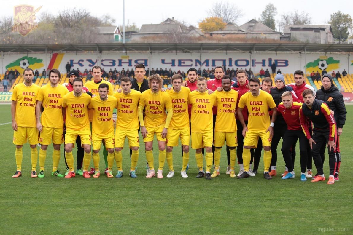 Футболісти ФК "Інгулець" вийшли на домашній матч 15-го туру Чемпіонату України серед команд Першої ліги у футболках з написом "Владе, ми з тобою" на знак підтримки півзахисника клубу Владислава Інгатьєва, який отримав важку травму у виїзному матчі проти "Кременя".