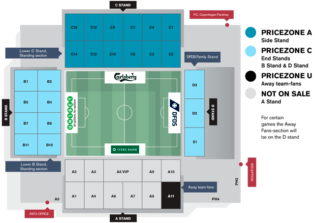Квитки на гостьову трибуну стадіону «Parken» у місті Копенгаген можна придбати в офісі Фан-клубу ФК «Динамо» Київ (вул. Грушевського, 3) 24 жовтня з 12:00 до 18:00, 25 жовтня з 10:00 до 17:00, з 28 жовтня по 4 листопада з 10:00 до 18:00 (2, 3 листопада вихідні).