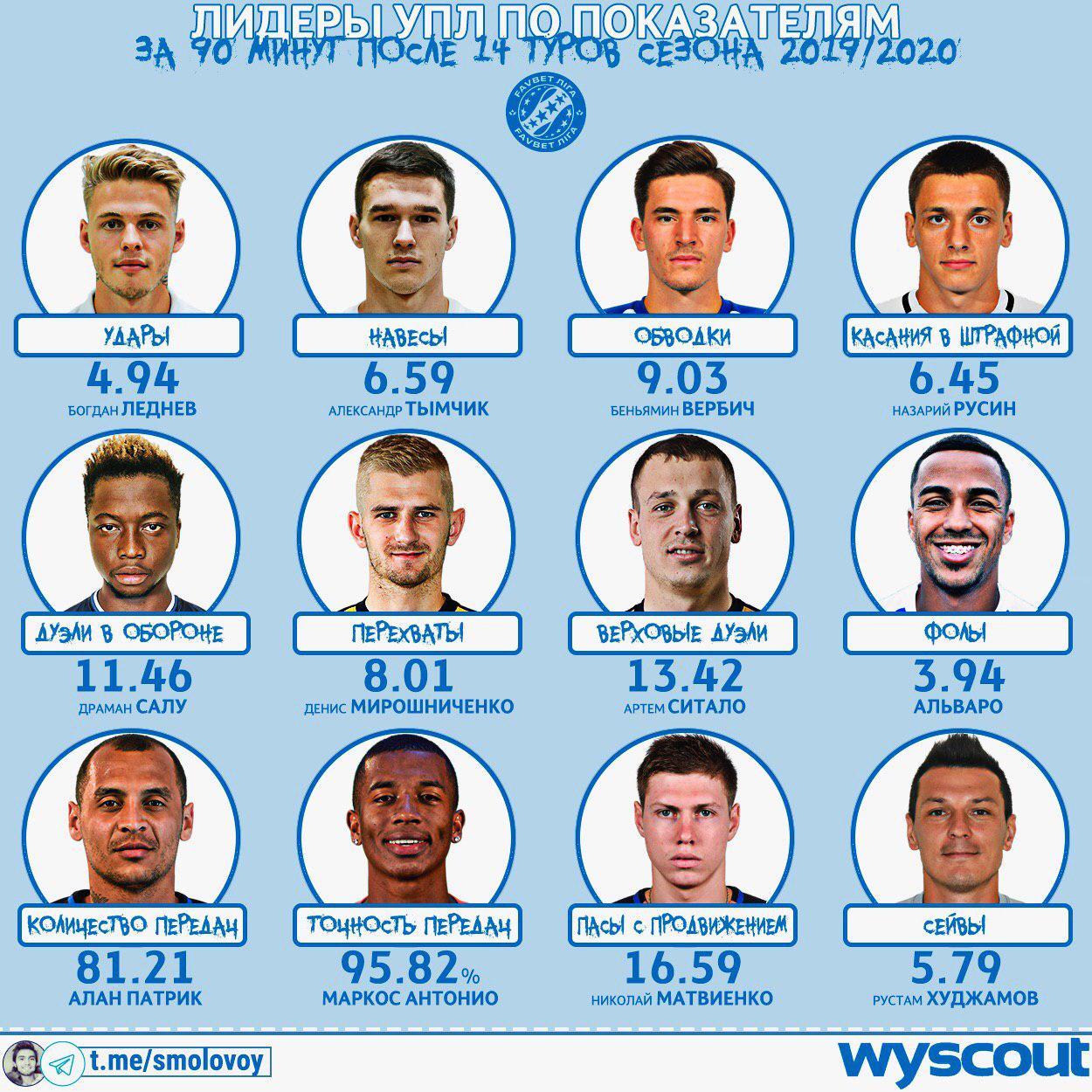 Лидеры УПЛ после 14 туров по средним показателям за 90 минут