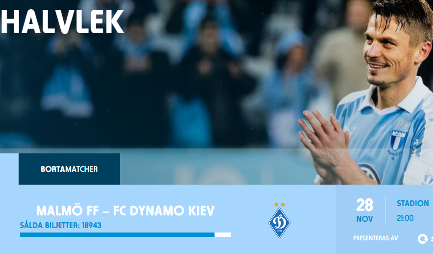 На матч 5-го тура Лиги Европы "Мальме" – "Динамо" (Киев) уже продано почти 19 тысяч билетов.