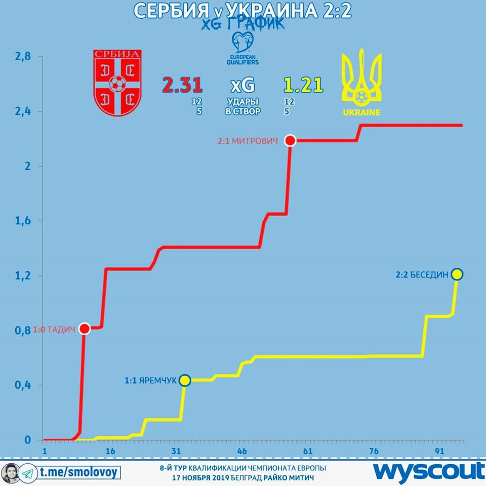 Мы же превзошли сербов в качестве позиционной атаки: 1.05 против 0.29 xG сербов (24 из 36 атак у нас правым флангом). А подобное качество, пожалуй, и есть тот уровень стабильности на который сборная вышла, - написал Смоловой на своей странице в Фейсбуке.