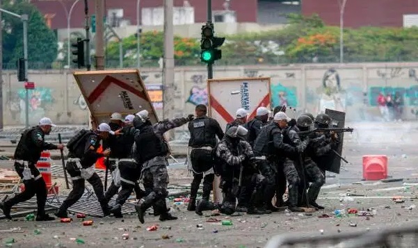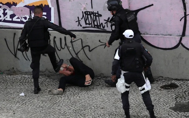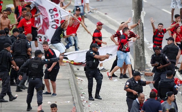 Дубинки, слезоточивый газ и жестокость. В Бразилии произошли стычки между полицией и болельщиками "Фламенго"