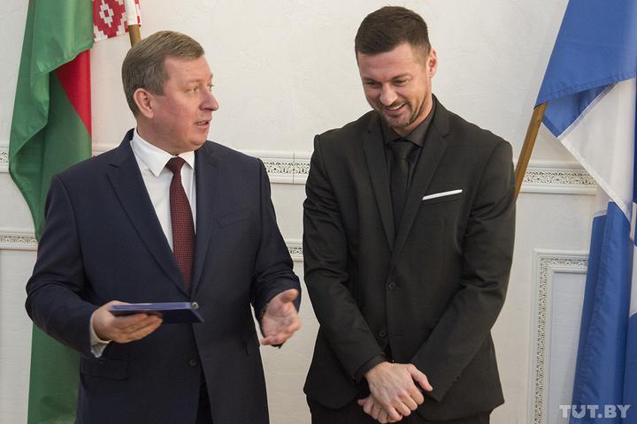 — У нас еще есть дальнейшие планы по инвестированию славного имени этого уважаемого человека в наш город Брест, - сказал Александр Рогачук, вручая памятный знак Артему Милевскому.