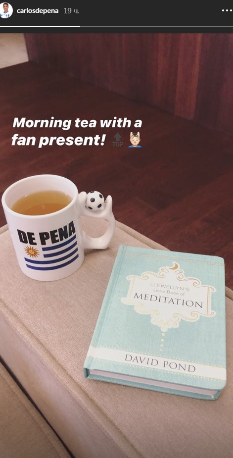 - Утренний чай с подарком фаната, - написал футболист в Инстаграме.
