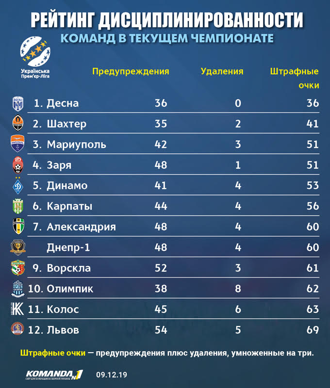 Без удалений - только "Десна". Рейтинг дисциплинированности клубов УПЛ