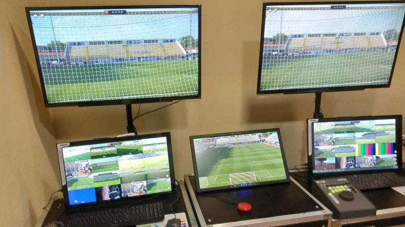 О работе системы VAR зрители на стадионе и у телеэкранов извещаются специальным сигналом. Он подается с помощью специальной кнопки, которая есть в фургоне. Транслятор будет подавать соответствующую картинку.