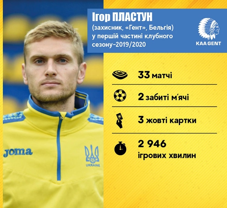 У першій частині сезону-2019/2020 центральний захисник «Гента» та національної збірної України Ігор Пластун зіграв найбільшу кількість матчів серед усіх легіонерів команди Андрія Шевченка.