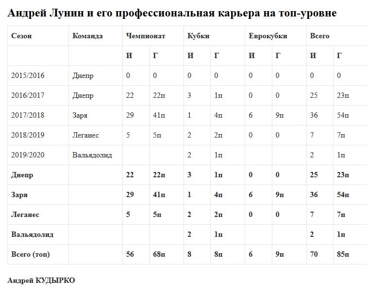 У Андрея Лунина карьера в Вальядолиде пока что складывается даже хуже, чем в Леганесе. В прошлом сезоне к январю он уже имел за плечами четыре поединка. По два — в чемпионате и Кубке Испании. Сейчас — только два, оба — в Кубке Испании.