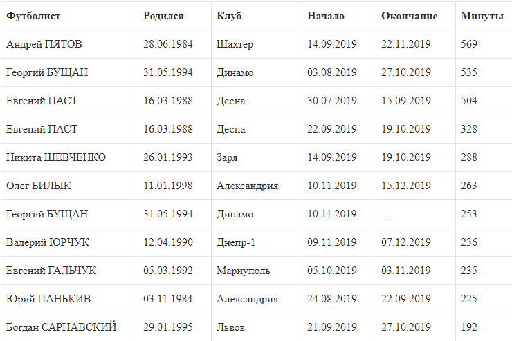 Сухие серии вратарей в чемпионате Украины. Сезон-2019/2020 в Премьер-лиге