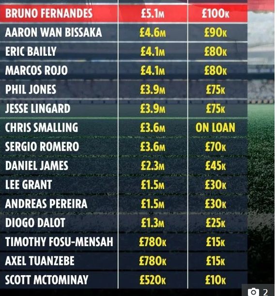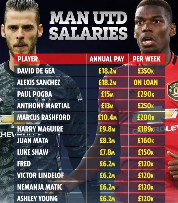 Больше всего получает Давид де Хеа. Его оклад составляет 350 тысяч в неделю.