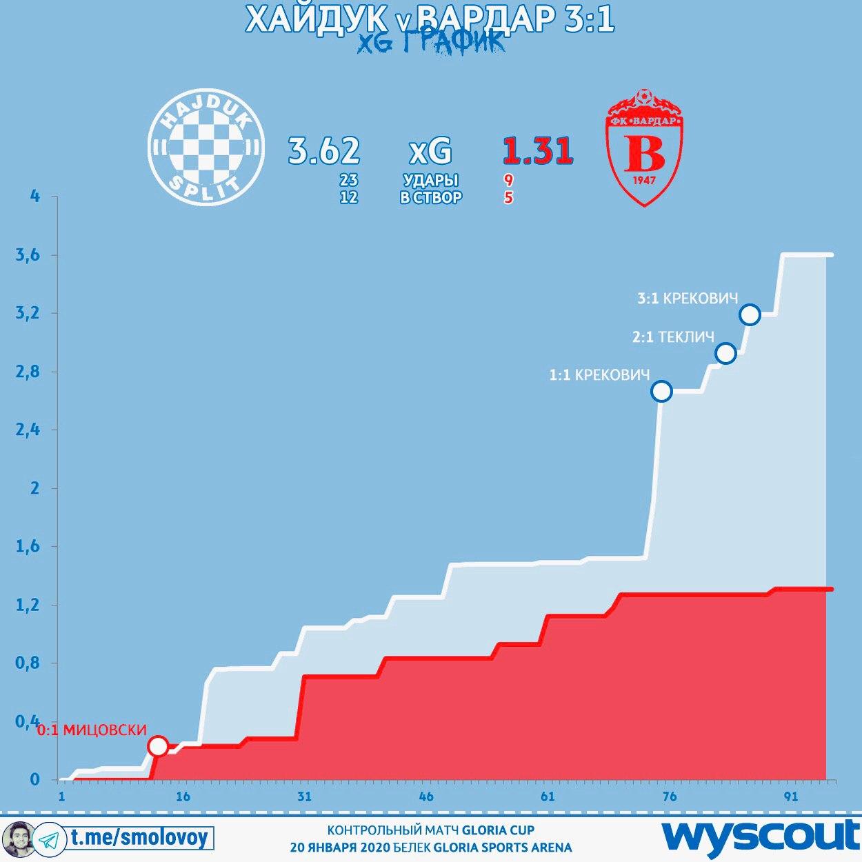 На голик македонцы честно наработали (1.31 xG), как честно выглядят 3 гола Хайдука (3.62 xG).