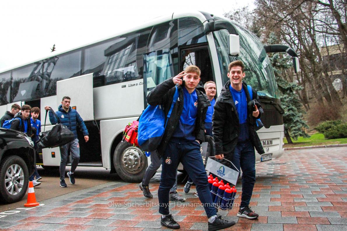 Команды "Динамо" Киев и "Динамо" Загреб, которые в 17:00 сойдутся в плей-офф Юношеской лиги УЕФА, уже приехали на стадион.