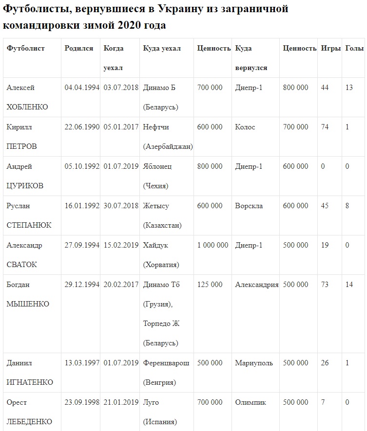 Журналисты zbirna.com разобрались, каких показателей добились футболисты, вернувшиеся в Украину из заграничной командировки зимой 2020 года.