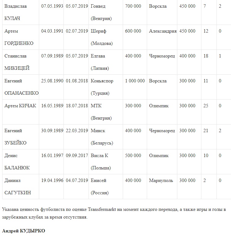 Этой зимой в Украину вернулось приличное количество футболистов, игравших за рубежом. Но лишь некоторые из них сумели поднять свою ценность за время командировки. Еще несколько сумели удержаться на том же уровне. Все остальные пошли на понижение. Кое-кто — радикальное.