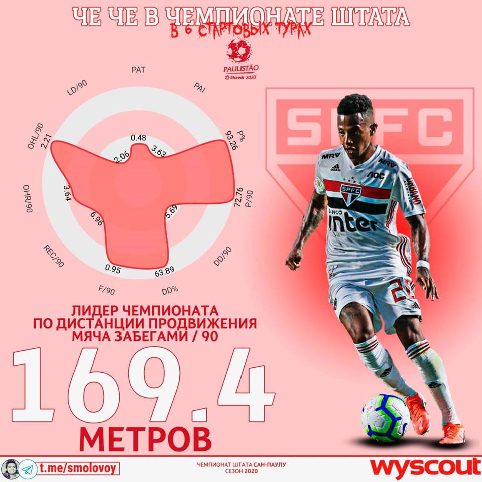 Футболисты Сан-Паулу часто входят в последнюю треть и не находят вариантов продвижения дальше: так и растёт цифра дальних ударов. Ну, либо идут попытки перезагрузить атаку в том числе и через Че Че. Вот и получается, что есть очень много работы по доставке в последнюю треть, высокий процент владения, а ударов из хороших позиций - мало...