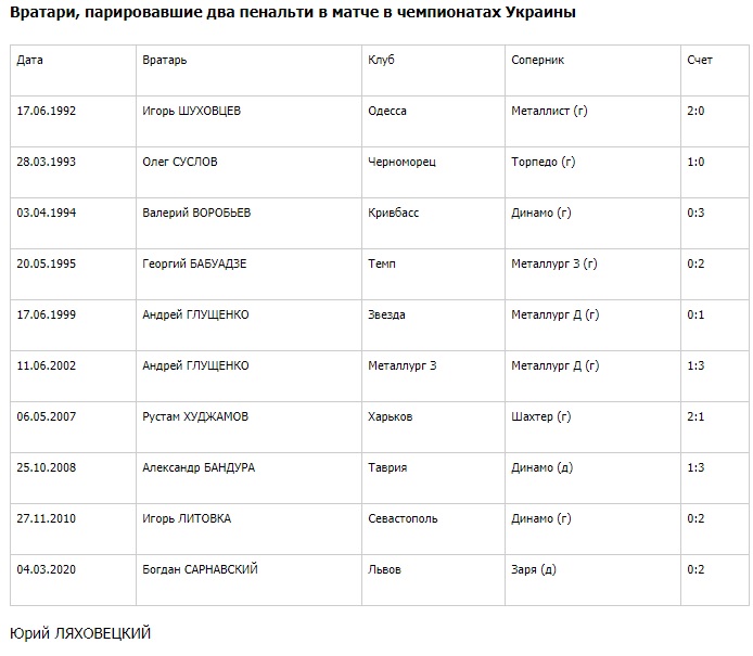 В истории чемпионатов Украины подобный подвиг ранее удавался только восьми вратарям (Андрею Глущенко - дважды). Причем последний раз еще в ноябре 2010 года.