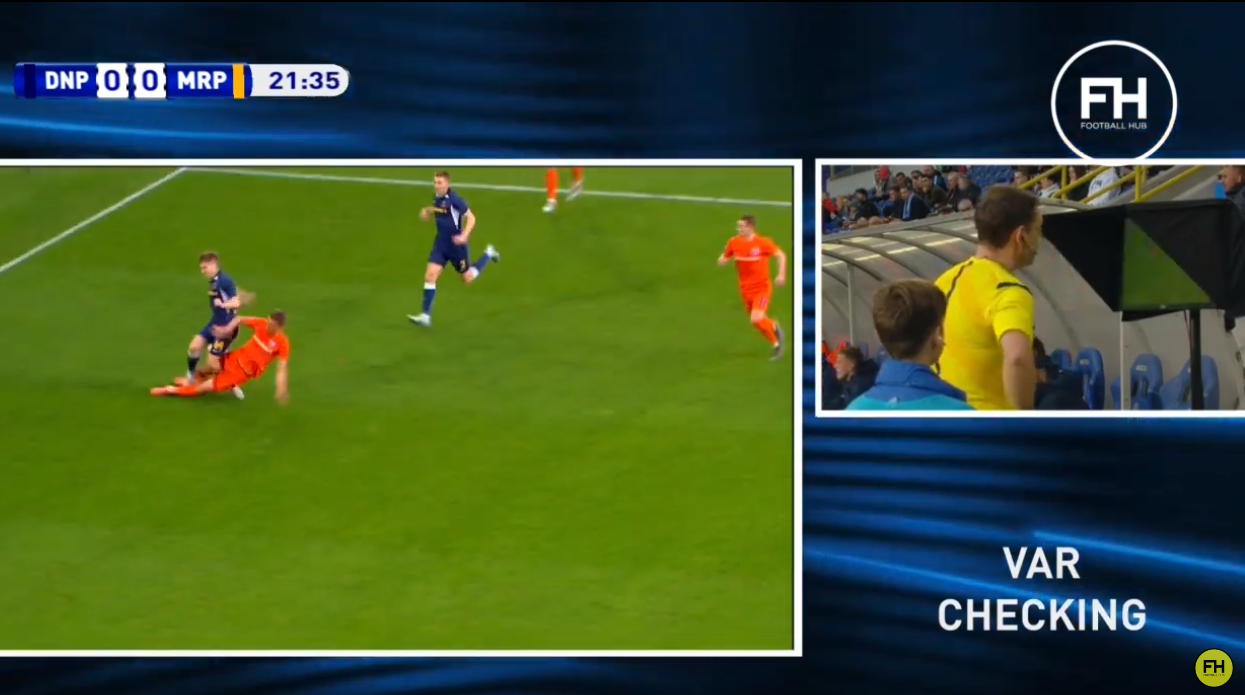В середине первого тайма матча 22-го тура УПЛ между "Днепром-1" и "Мариуполем" арбитр встречи Евгений Арановский воспользовался VAR.