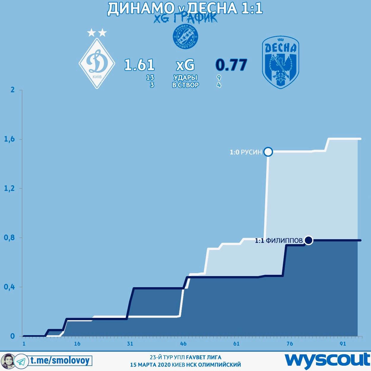 За 3 поединка с Десной киевляне настреляли на 6.23 xG, но забили трижды.