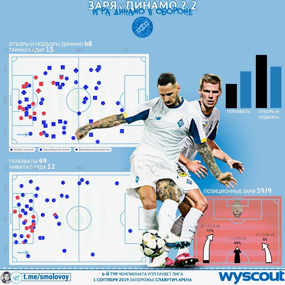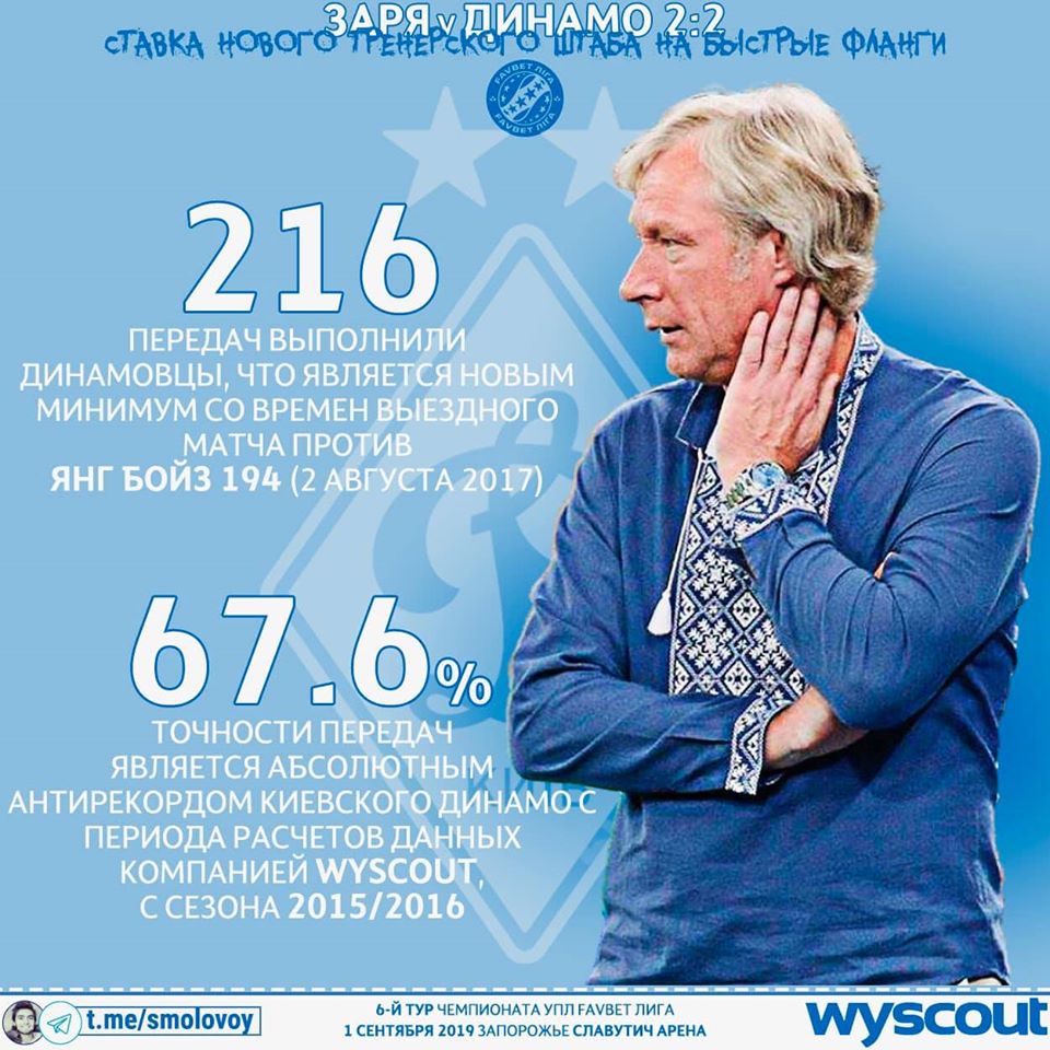 Данную игру можно частично сравнить с матчем Динамо в Александрии. Заря так же «оказывала давление», но пошла дальше и нанесла тьму ударов. Тьму беспонтовых ударов", - написал Смоловой.