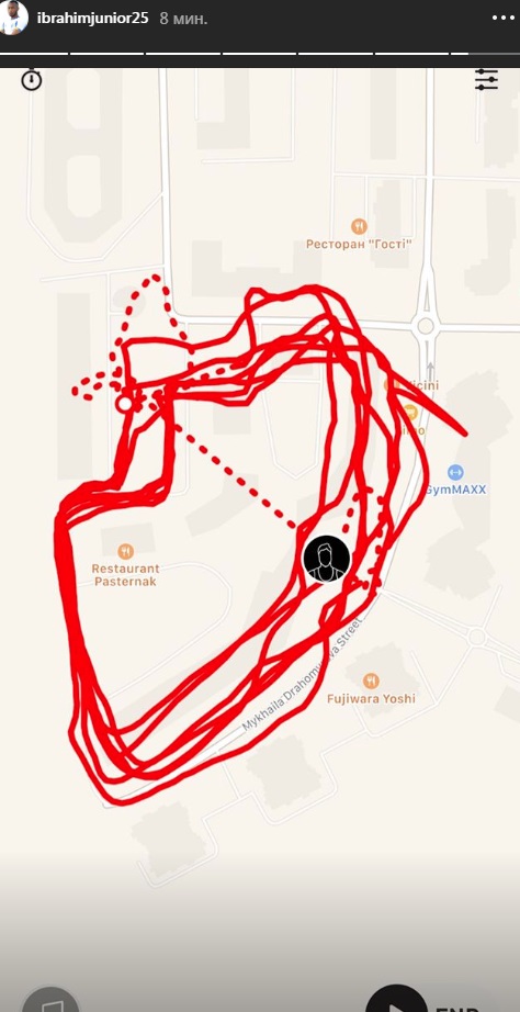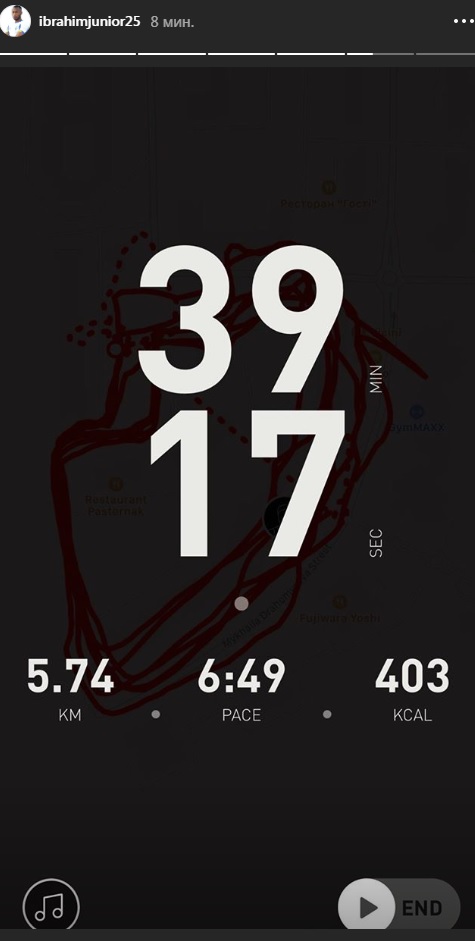 Бельгийский нападающий "Динамо" Ибрагим Каргбо показал, какое расстояние он пробегает во время утренней тренировки.