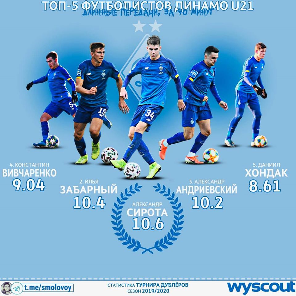 В сезоне 2017/2018 дубль Динамо выполнял 59.59 (54.6%) длинных передач за 90 минут. Были лидерами турнира.