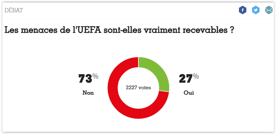 Французский журнал France Football провел опрос среди своих читателей, вынеся на обсуждение вопрос: Имеет ли право УЕФА угрожать клубам исключением из еврокубков в такое время?