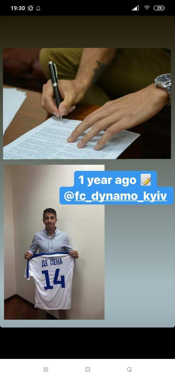 Вингер "Динамо" Карлос де Пена в своем Instagram вспомнил, как ровно год назад подписал контракт с киевским клубом.