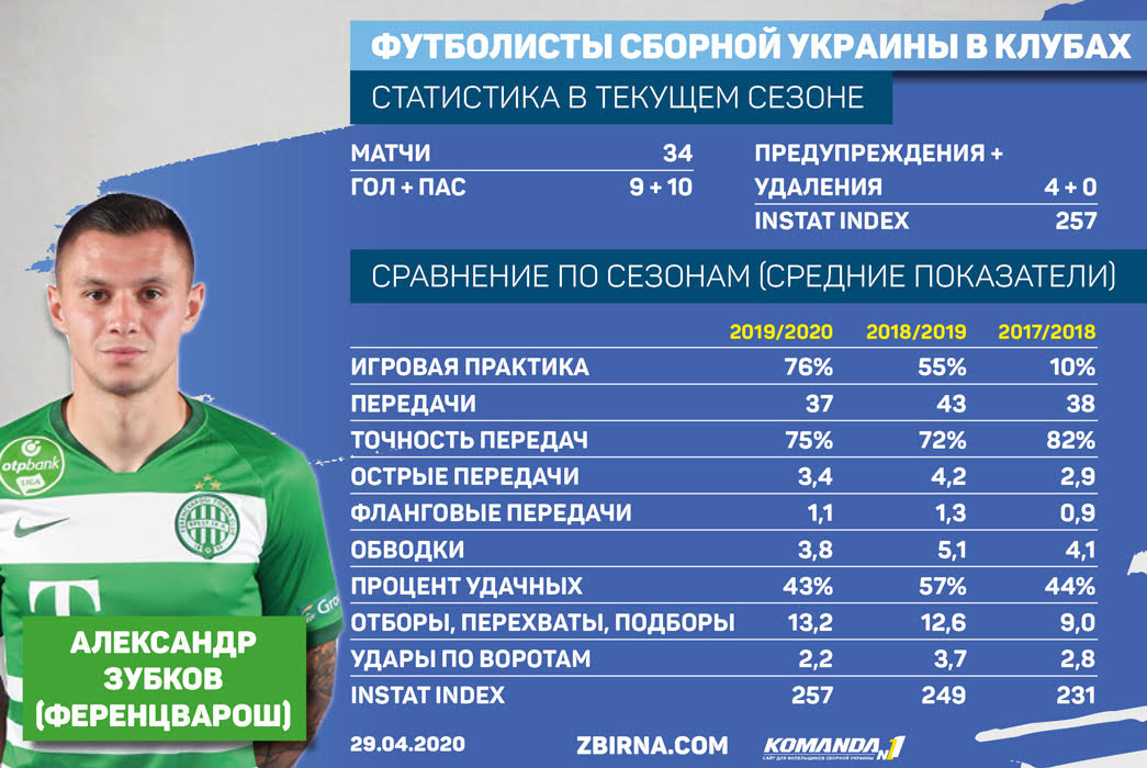 Вообще-то, считать его игроком сборной Украины, конечно же, преждевременно. Но кандидат он уже вполне официальный. На мартовский сбор национальной команды полузащитник венгерского Ференцвароша Александр Зубков попал в резервный список. В нынешнем сезоне он добился существенного прогресса, повысил свою результативность (семь из 19-ти очков по системе гол + пас набрал в еврокубках). Благодаря работе Сергея Реброва стал больше играть на команду, и количество голевых передач это подтверждает. Новый сезон Зубков может начать в новом клубе из более элитного чемпионата, но тут многое зависит от Шахтера, которому этот хавбек все еще принадлежит. В любом случае, это хороший резерв сборной Украины. Конкуренции на флангах атаки там достаточно высокая, но мы же помним, что Евгению Коноплянке и Андрею Ярмоленко уже по 30 лет, а Марлосу скоро 32…