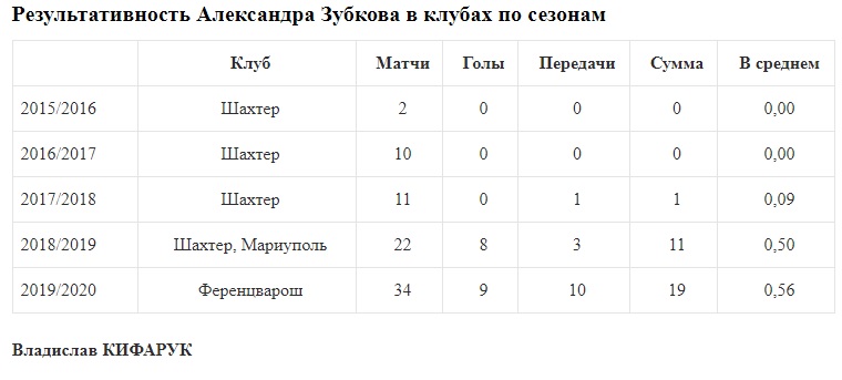 Табель успеваемости в клубе игрока сборной Украины. Александр Зубков