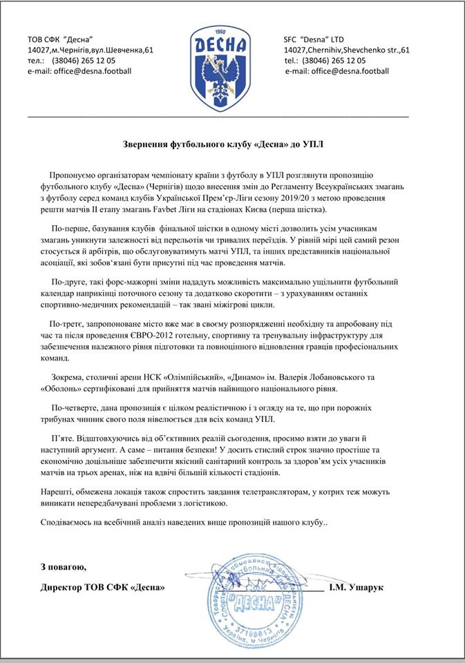 Президент "Десны": "Матчи должны пройти в одном городе. Киев - идеальное для этого место"
